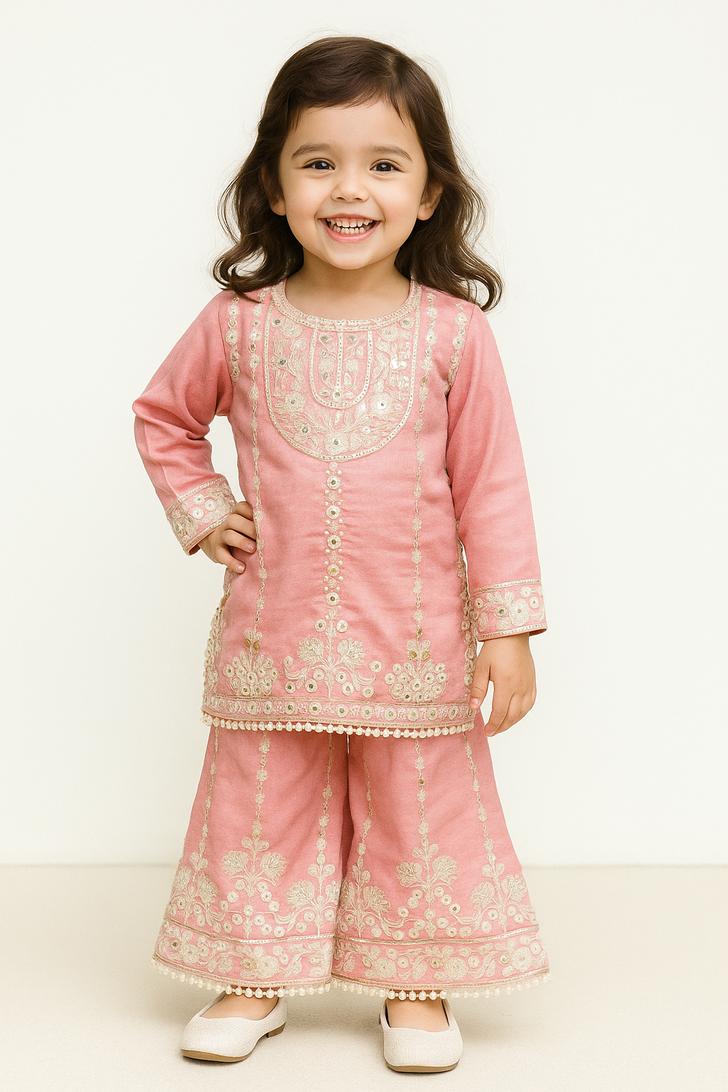 Blush Pink Embroidered Plazo Set for Baby Girls (1–5 Years)