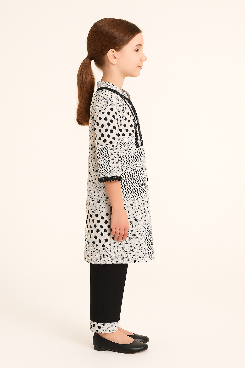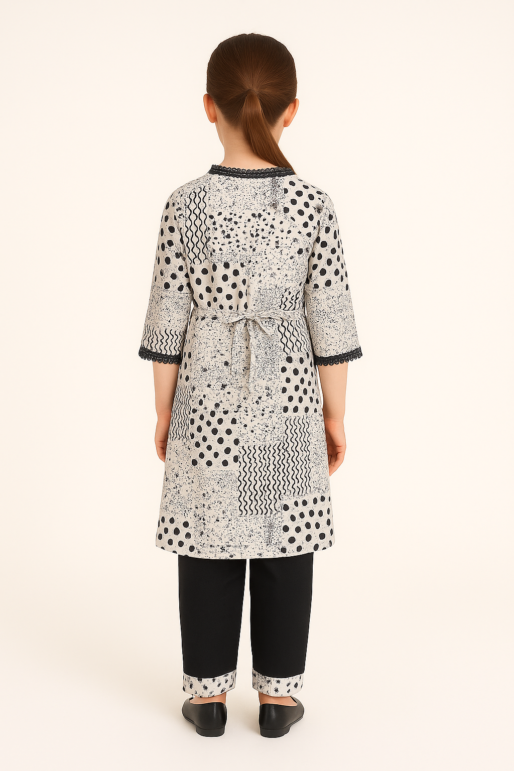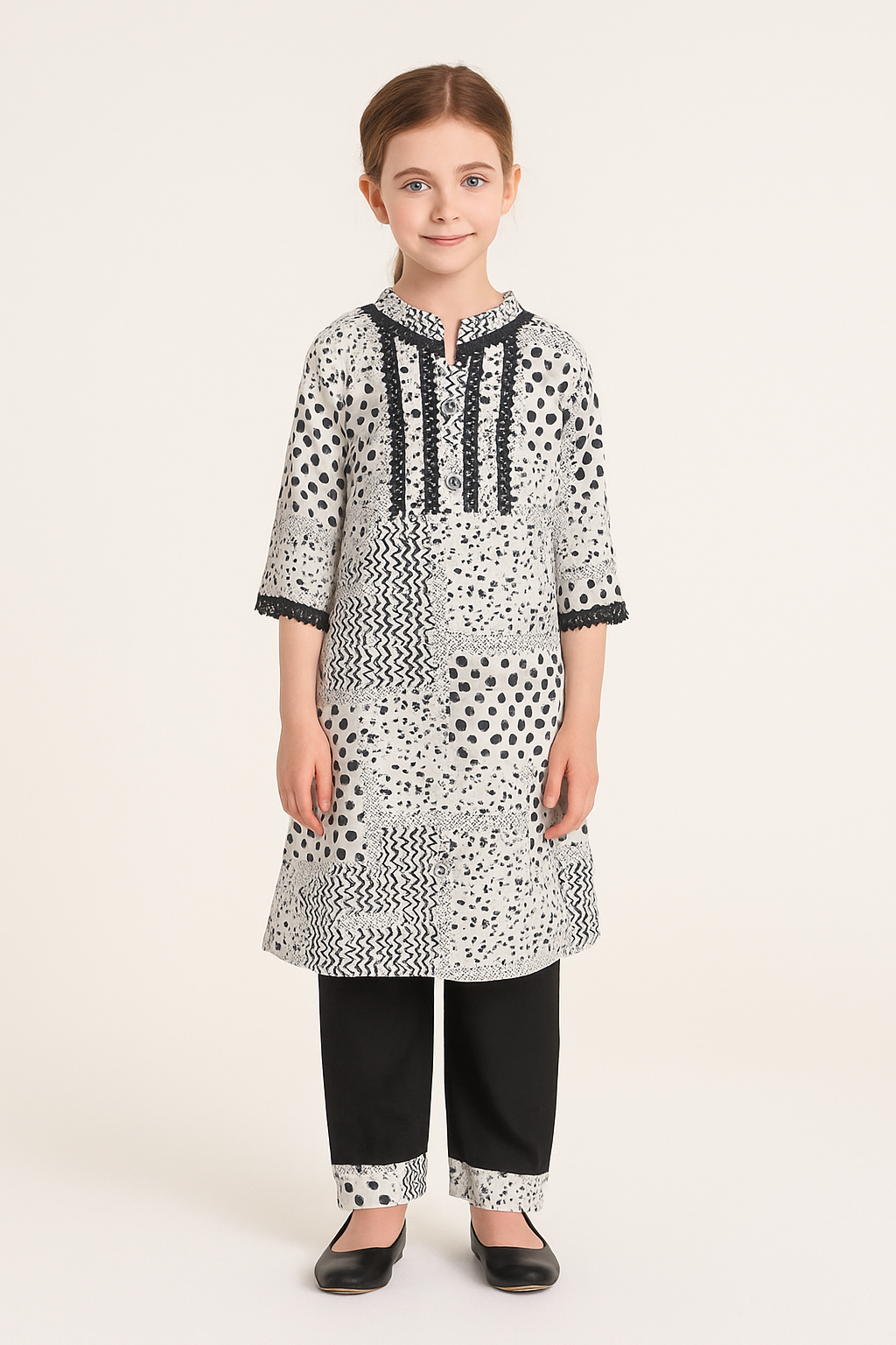 Monochrome Printed Kurta Set for Girls (5–15 Years)