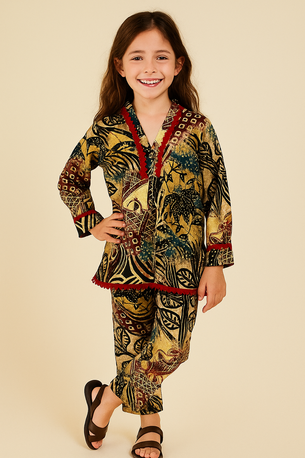Printed Cotton Cord Set - Let your little trendsetter shine in style with our Printed Cotton Cord Set β a perfect blend of ethnic charm and contemporary flair. Designed with intricate detailing and tailored for all-day comfort, this coordinated set features a stylish top and matching bottoms that are as festive as they are functional. Whether itβs a wedding, celebration, or family get-together, this outfit ensures effortless elegance in every step.