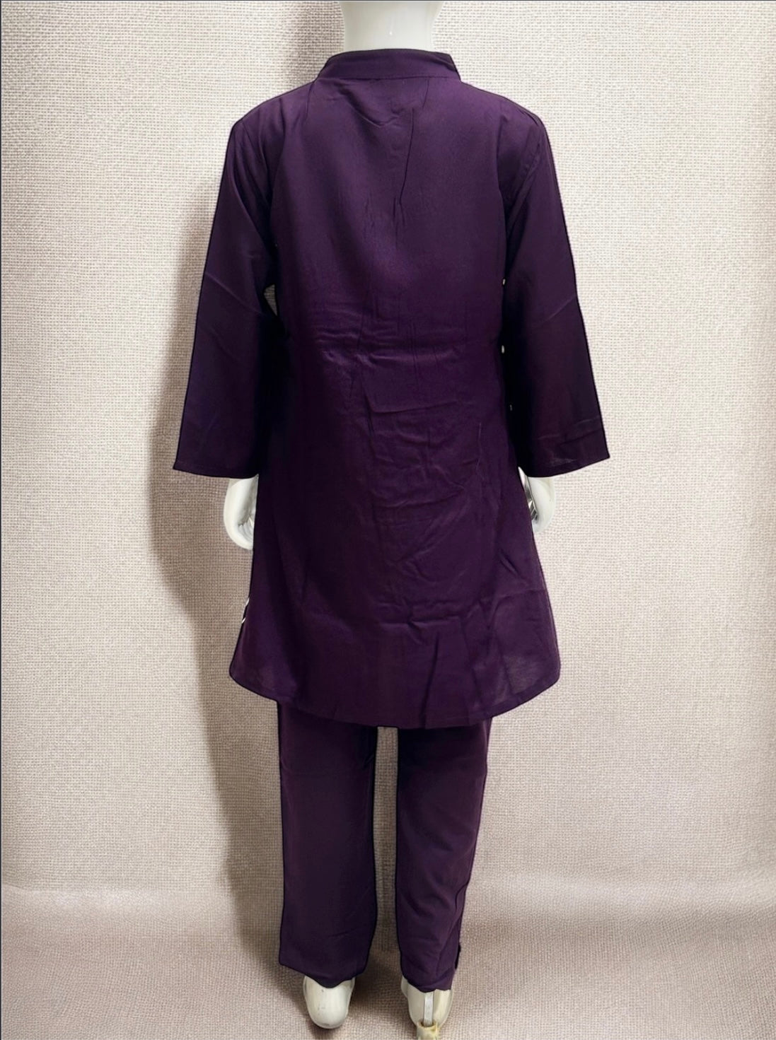 Girls' Dark Purple Kurti Set with White Embroidery – Stylish Ethnic Wear for Kids (6 Years to 16 years)