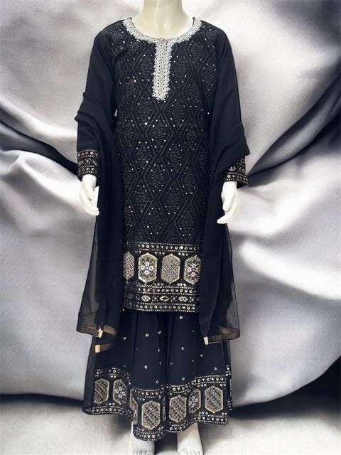 Soft bloom Gharara Set - Let your little one steal the spotlight in our Soft bloom Gharara Set — a charming fusion of ethnic elegance and playful comfort. This beautifully designed outfit features an intricately embroidered kurti paired with flared gharara bottoms and a soft dupatta, making it the perfect choice for festive gatherings and special occasions. Whether it’s a wedding or a cultural celebration, this set brings royal vibes with every twirl and smile.